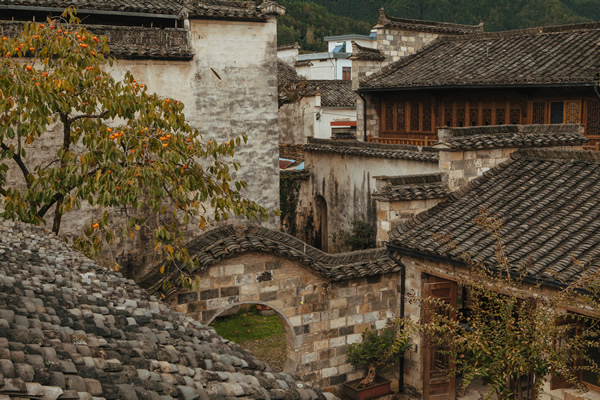冬日的黃山黟縣碧山小村,靜靜地佇立在山腳下。村中人口并不多,即便是白天,古村也十分安靜。到了晚飯的辰光,黃昏的余光斜斜地射在馬頭墻與屋頂的瓦楞草上,有一種慵懶與悵然的美,這時的小村這才稍稍熱鬧一些:斑駁的高墻上,有裊裊炊煙不斷升騰起,氤氳著,仿佛古徽州的微微呼吸;大爺大媽們也開始端著飯碗去鄰居家串門,說些新聞舊事。