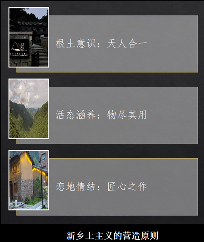 在推進文化鄉建的過程中,我們需要遵循以下三個重要的原則。第一個原則是根土意識、天人合一,就是要注重人與自然的和諧。我們每一個鄉建人要經常親自到鄉村去看看,去深度體驗鄉村的文化,去看看鄉村到底需要哪些新的事物?我們主觀設計的鄉村建設符不符合鄉村的自然環境和人們的生活習慣?建筑材料是不是從鄉村的在地環境中選出來的?鄉村營造的結果是不是文明的、現代的、新興的?第二個原則是活態涵養,物盡其用。我們要平等而充分地對待每一樣鄉村事務,要在它的生命周期當中把握住它的本色、材質和功能,極盡可能地去展現它的才華,實現它的功能。第三個原則是戀地情結、匠心制作。我們個人生活在土地上所承載的地方感,要通過手作與其生活經歷、情感、精神結合在一起。通過這些具有地方感的手工造物,我們能夠體悟鄉土、感受鄉情,看到未來的新生。