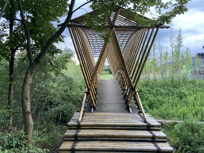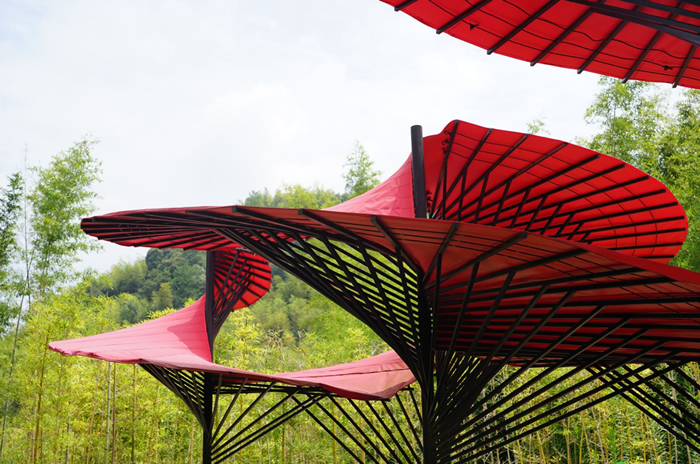 張雷:我們給青山村定下大的調子,但是我們不定風格,風格可以多元。我們每周會參加黃湖鎮的工作會議,會議會涉及到公共建設,我們不討論某個設計好看不好看,但對和錯我們可以清楚的討論出結果。比如在王母山上,原計劃要修一個牌子,我們的建議是不建牌子,而是建涼亭。我們邀請了研究涼亭文化的建筑師王俊磊博士,中國的鄉村本來是有大量的涼亭,“送客要送到十里涼亭”,但現在涼亭都消失了,所以我們在青山村想要恢復涼亭文化。王俊磊博士并沒有做古涼亭,而是新的木作結構。還有青山村的公交車站不用城里公交車站樣子,而是請設計師設計在地的公交車站。我們請了三位建筑師羅宇杰、趙星、陸翔老師做了三個方案設計,每個方案有大中小微4個公交車站,我再去推動事情落地。建筑師陳浩如老師做未來鄉村訪客中心設計,一共做了兩年,非常艱難,但有很大的意義。訪客中心體量比周圍建筑大,所以會有壓迫感。于是陳浩如用竹子把建筑隱藏起來,這樣就非常協調和軟性了。這是用竹子很對的地方,我比較反對刻意用竹子,但這里是實用的,而不是裝飾。