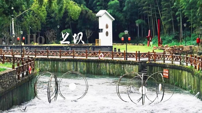 作品“旋鼓”,搭建在上壩村地標龍鱗壩上。這里有毛竹、有土峰,景色宜人。