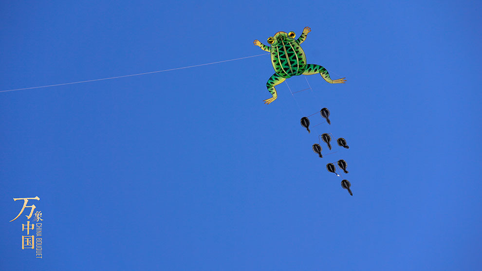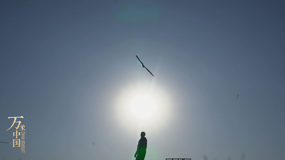 在2000多年前,中國人就發明了風箏,它寄托著中國人最初的飛翔夢想。在歷史長河中,它的功能逐漸由軍事轉變為娛樂健身。今天,民間藝人劉寶華,通過拉桿、齒輪等設計讓風箏產生了靈動的效果,而體育教練張金彪則是靠肢體運動帶動“盤鷹”飛行,沒有風也可以翱翔。在天空中,仿佛是一只真鷹在盤旋。