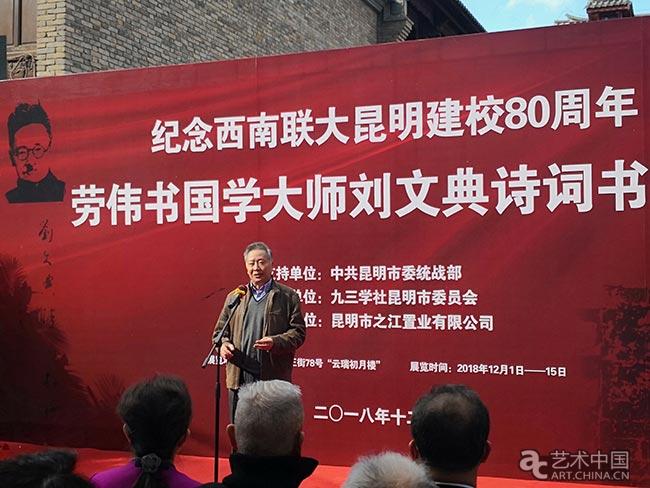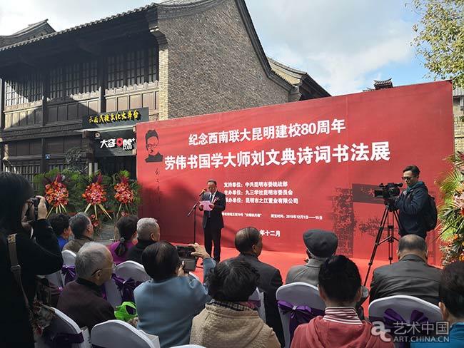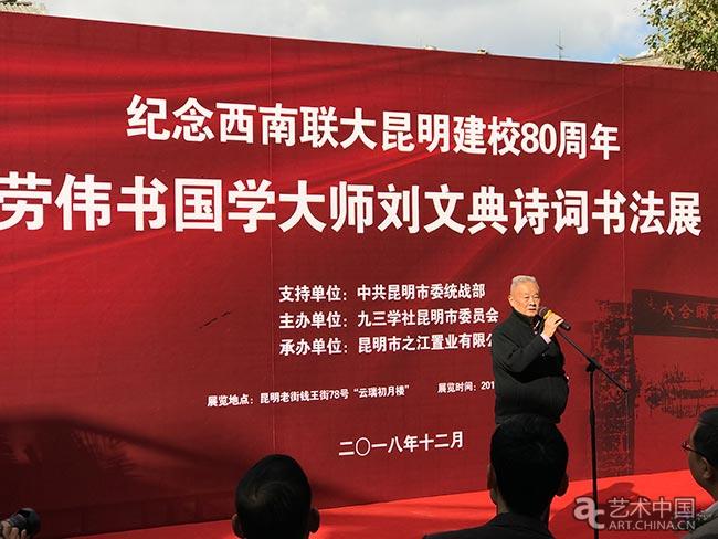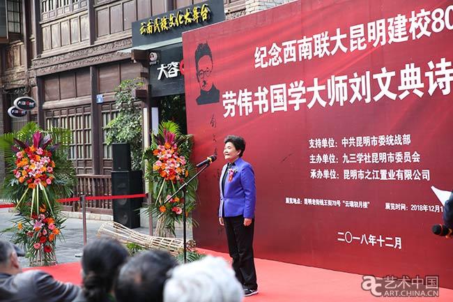 昆明市委常委、市委統戰部部長楊皕,九三學社云南省委副主委、昆明市人大常委會副主任、九三學社昆明市委主委常敏等領導為“春融同心——昆明市統戰文化基地”揭牌,昆明市之江置業有限公司總經理沈海虹在揭牌儀式致辭,昆明市委統戰部副部長王蓉主持揭牌儀式。九三學社云南省委副主委、昆明市人大常委會副主任、九三學社昆明市委主委常敏,國學大師劉文典先生哲嗣劉平章,中國著名書畫藝術家勞偉先后在“紀念西南聯大昆明建校80周年——勞偉書國學大師劉文典詩詞書法展”開幕式致辭,云南省委原常委、云南省委宣傳部原部長、云南省人大常委會原常務副主任晏友瓊宣布“紀念西南聯大昆明建校80周年——勞偉書國學大師劉文典詩詞書法展”開幕。