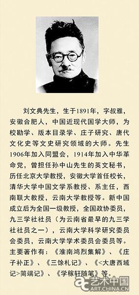劉文典先生,生于1891年,字叔雅,安徽合肥人,中國近現代國學大師,為??睂W、版本目錄學、莊子研究、唐代文化史等文史研究領域的大師。先生1906年加入同盟會,1914年加入中華革命黨,曾擔任孫中山先生的英文秘書,歷任北京大學教授,安徽大學首任校長,清華大學中國文學系教授、系主任,西南聯大教授,云南大學教授等。新中國成立后為全國一級教授,全國政協委員,九三學社社員(為云南省最早的九三學社社員之一),云南大學科學研究委員會委員,云南大學學術委員會委員等。主要著作有:《淮南鴻烈集解》、《莊子補正》、《三馀札記》、《<大唐西域記>簡端記》、《學稼軒隨筆》等。