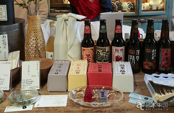 在入選D&DEPARTMENT的當地產品中,傳統用品和食品、飲品較多,包括碧山工銷社出品的徽墨、碧山佳器;祁紅松針、黃山毛峰、岳西翠蘭幾種茶;盛在玻璃瓶里的筍絲、干豆角等干品;漁亭糕、花生糖、徽墨酥等糕點;“工銷社”“黑多”“狗啤”“天光”“落昏” 等幾個當地品牌精釀啤酒和專門為這次開業定制的“d”紀念款啤酒。據店長張華寧介紹,幾種當地糕點定制于村中的古味食品廠,這家的糕點味道很好,但村中小賣部的商品包裝簡陋,黃山店重新設計外包裝和定制了口味后,原來的糕點賦予了新的價值。而“天光”“落昏”的精釀啤酒則取自當地村民稱呼早飯晚飯的的方言。手工藝人姚家駒師傅制作的竹編手工藝品非常精致,黃山店會定期向姚師傅訂制造型獨特有趣的竹編手工藝制品。從近日的銷售情況看,“LIFESTOCK”系列中的環保布包、日本制的餐具及器皿類、碧山本地竹藝匠人手工編織的戒指和竹籃玩具等商品具有地域代表性,深受國內外顧客的歡迎。點心食品類中碧山工銷社原有的商品紅紙包,徽墨酥還有黃山本地茶葉也受到好評。