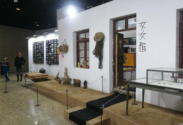 靳勒具有雙重身份,他本身就是石節子村民,之后他去了大城市走上了專業美術的道路。石節子村沒有優美的自然環境,也缺乏悠久的歷史,但這里的一草一木,一磚一瓦都都牽動著靳勒的情感。靳勒的藝術鄉建非常明確,就是以藝術帶動鄉村發展,讓藝術給家鄉帶來活力。靳勒將這個小山村里13戶農家都變成了美術館,村莊的山水、田園、植被、院落、家畜、農具和日用品都成為了美術館的展品。他邀請眾多的藝術家來到這里駐地創作,而鄉民也參與其中。石節子村曾經做過一個活動,即外來的藝術家們和村民們一起做藝術創作,題目是:“我們一起飛”。這次展覽中,石節子展區搭起了一個農家小屋——女女館,這座小屋還原了石節子農家美術館原貌。土炕、飯桌、小木柜、燒水壺、墻上的鏡框和獎狀、這些西北山村的生活元素,帶給城市觀眾真實的觸感。