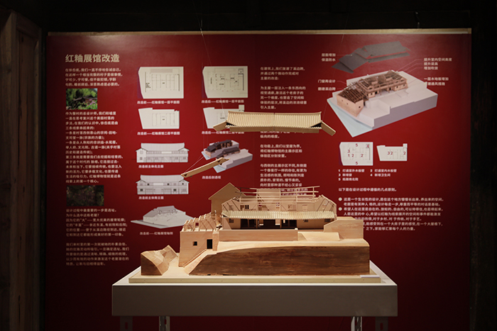 老建筑改造是鄉建中的必備元素,徐岙底村的建筑改造集中展示了紅粬工坊和紅粬展館,它們和廊橋都被制成精致的模型呈現在展覽中。