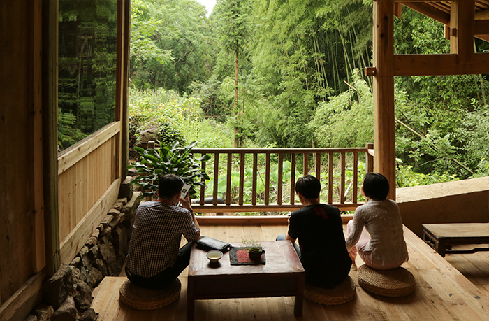 紅粬展館原是一座荒廢多年的木結構老宅,墟里團隊最初看中了這座大宅樸實無華、舒展開朗的氣質,富有“宋的感覺”。在建筑改造中,建筑師在尊重原建筑的格局下,注入了視覺通廊,提升室內空間高度,擴大采光面積。觀眾穿行在靜謐的木板房內,漫山幽竹映入格窗,古意油然而生。在功能上,以堂屋為界,將博物館分為西側展示區和東側體驗區,體驗區照明和陳列是質樸、家常和慢節奏的,人們可以在這里品紅粬、讀書、做手工、喝茶聊天,或坐于塌上,觀賞溪邊翠竹,聆聽瓦檐滴雨。