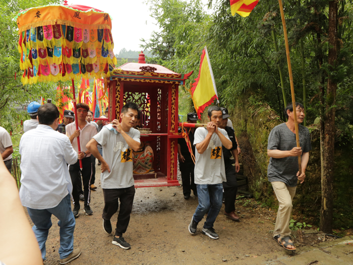 上午開幕式結束不久,隨著一陣震天的鞭炮聲。一年一度的禳神節開始了。泰順的六月六禳神節源于唐末,主要祭祀地方神祗,歷時十五天左右,每年農歷六月期間都舉行廟會盛典。徐岙底村主要祭奠的是地方神——徐三翁。北宋時徐震(徐三翁)抗擊方臘之亂,歿而成神,村民將此地命名為“徐岙”,以此紀念。