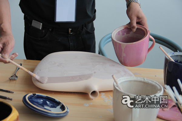 對于從事繪畫創作的藝術家來說,素胚替代了紙張承載著藝術家們的繪畫語言,“對于釉色和燒制的效果,我們需要一個熟悉和掌握的過程。釉色的流變,色彩之間的微妙變化……很多國外的藝術家將一些觀念融入到具有東方特征的胚體上,這本身也反映了東西方文化的一種交融?!敝袊囆g家吳運鴻說道。