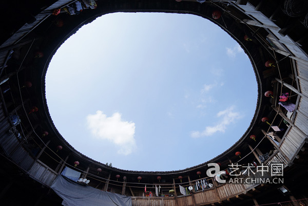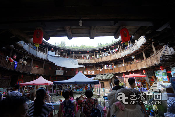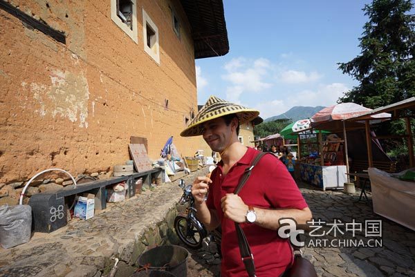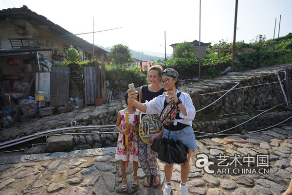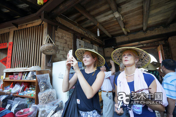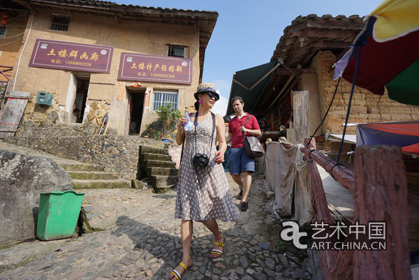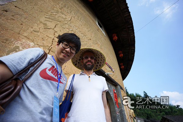 德國藝術家Laura K.Sachs和Gudrun Schmidt館長在土樓內拍照