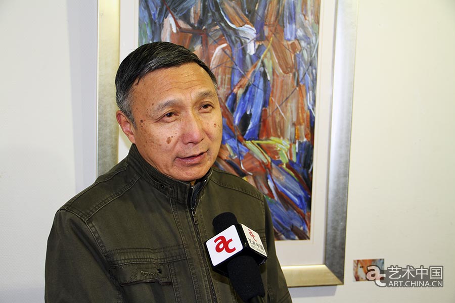 上苑藝術家聯合會主席李向明在展覽現場接受藝術中國采訪