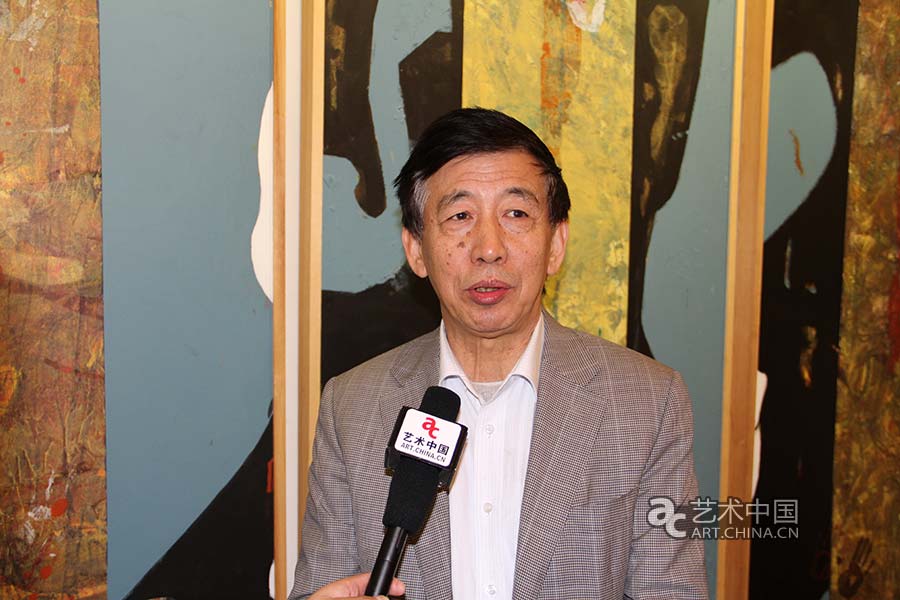 上苑藝術家聯合會主席李向明在展覽現場接受藝術中國采訪