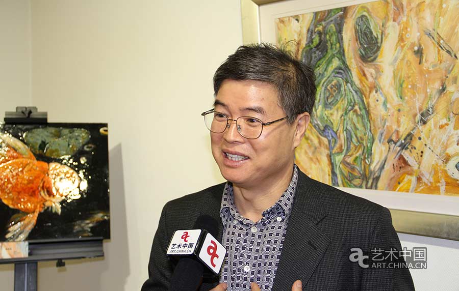 韓國駐中國大使館文化參贊、文化院院長金辰坤在展覽現場接受藝術中國采訪