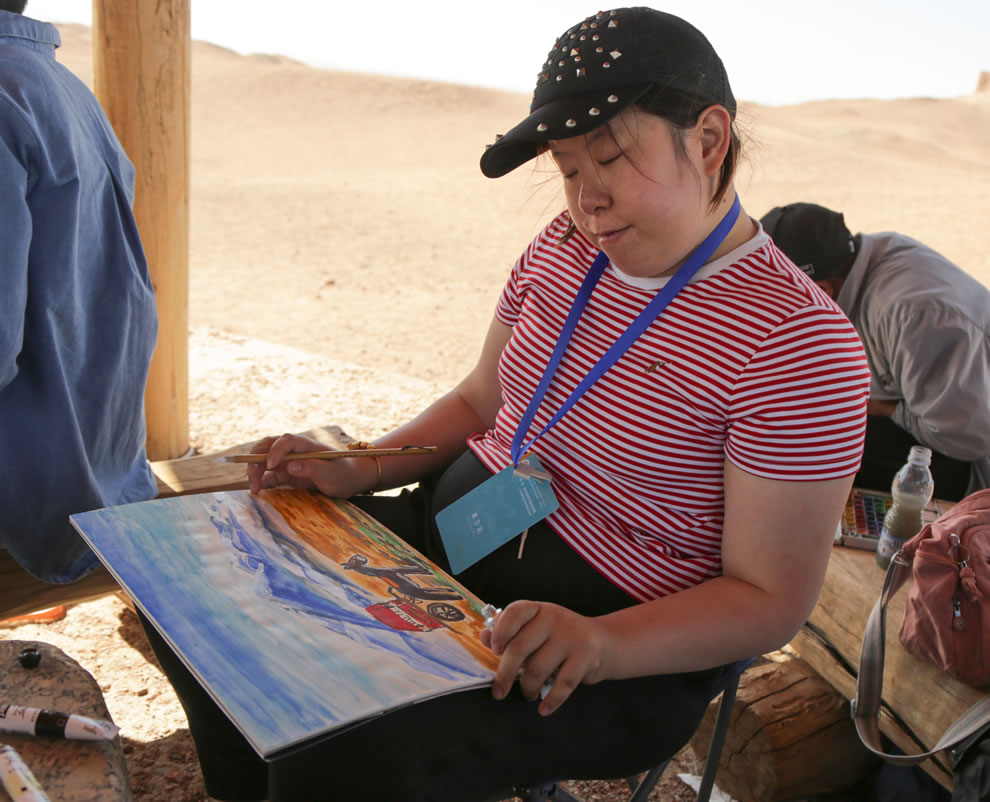 中外藝術家在陽關景區涼亭集體寫生