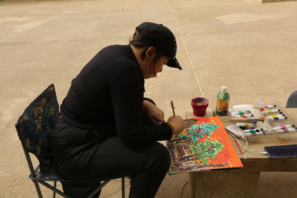 巴拿馬藝術家黃莎莉在西千佛洞前寫生