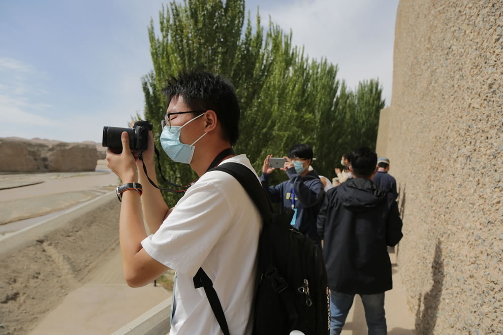 中外藝術家參觀西千佛洞 攝影:岳鋒