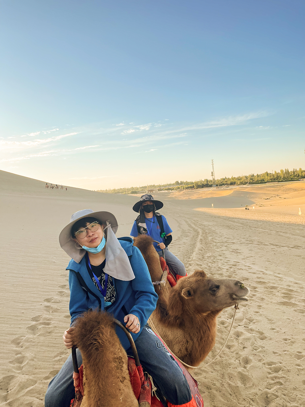 日本藝術家山仲 可文與韓國藝術家安鐘赫在鳴沙山月牙泉景區 攝影:倪納納