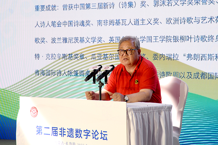 7月29日,由中國非物質文化遺產保護協會主辦,中共扎魯特旗委員會、扎魯特旗人民政府、中國數字文化集團、中國非遺保護協會非遺數字專業委員會聯合承辦的第二屆非遺數字論壇在內蒙古通遼市扎魯特旗舉行。中國非遺保護協會王曉峰會長,著名詩人、中國作家協會詩歌委員會主任、中國作家協會原副主席吉狄馬加,內蒙古自治區文旅廳一級巡視員王雪峰等領導及全國非遺數字化領域學者專家近百名嘉賓出席了論壇。