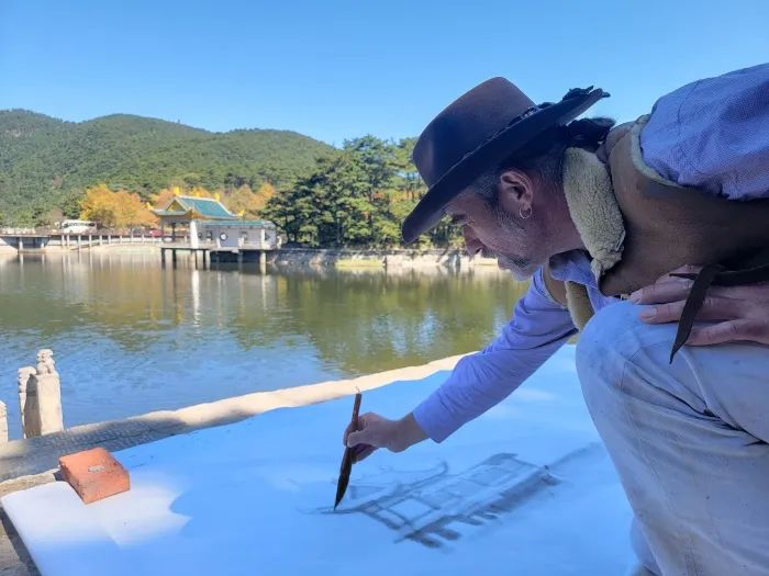 捷克藝術家伊瑞(Jiri Straka)在如琴湖邊寫生創作