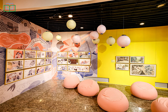 展覽分為“童思、童趣、童心”三個章節,以原稿、樣書、出版物、動畫視頻、場景空間等多種方式呈現。展場設置了展示區、閱讀區、視頻區,總計展出100部原創圖畫書的821幅原作、動畫視頻24部、打造源自十本圖畫書十個沉浸式主題場景。