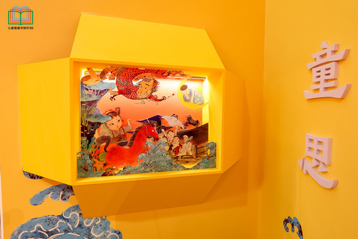 作為100件優秀兒童圖畫書作品首次面向公眾展出,“以美筑夢——‘兒童圖畫書創作100’作品展覽”的展陳設計獨具匠心,以書作為貫穿展覽的的造型意象,在雅致書香和繽紛色彩之中,為觀眾呈現一場充滿互動感、趣味性、立體化、沉浸式的圖畫書之旅。