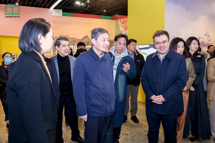 中國美術家協會分黨組書記、駐會副主席、秘書長馬鋒輝在開幕式致辭中指出,“兒童圖畫書創作100項目”是美術界學習貫徹習近平文化思想特別是貫徹落實習近平總書記關于美育工作重要指示精神的具體舉措。習近平總書記在給中央美術學院8位老教授的回信中指出,做好美育工作,要堅持立德樹人,扎根時代生活,遵循美育特點,弘揚中華美育精神,讓祖國下一代身心都健康成長。近年來,中國美協進行廣泛調研、精心謀劃,決定啟動新時代青年美術人才培養計劃,先期實施的“兒童圖畫書創作100”項目,就是要培養一批青年兒童圖畫書作者,提升原創中國兒童圖畫書的創作水平與出版質量。我們衷心希望通過這次展覽,能激勵更多青年美術家參與、從事原創兒童圖畫書創作中去,通過美的傳播,啟發少年兒童感知中國文化,增強愛國情感,培育社會主義核心價值觀,讓他們在昂揚向上、樂觀健康的審美世界中健康成長。同時,他認為此次展覽的舉辦、圖畫書作品的結集出版以及后續藝術衍生品研發等一系列活動,將會對提升原創中國兒童圖畫書的影響力和覆蓋面產生積極的作用。這不僅有助于提高我國兒童圖畫書的知名度和市場份額,還能為相關產業鏈帶來新的發展機遇,推動文化產業的繁榮。他表示中國美協也將以此項目為抓手,形成長效扶持、培養和激勵機制。持續推進優秀原創兒童圖畫書的創作,力爭推出更多具有中國特色、中國風格、中國氣派的兒童讀物,為扎實推進文化強國和中華民族現代文明建設作出新的貢獻。