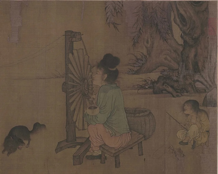 這張畫景物不多,三四個人物,主要還是一老一少兩個女子,是一件傳神的精品之作?!稉v練圖》與《紡車圖》,一個是浪漫繁華的畫面,一個是色彩暗淡、基調沉重的作品,兩張畫相對比,確實可以讓觀眾有不同的感受,是否也有像張養浩所寫的“興,百姓苦,亡,百姓苦”這樣的歷史之憂思呢?