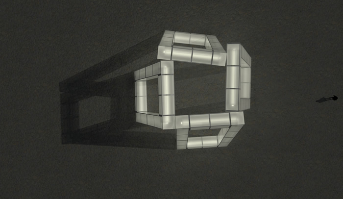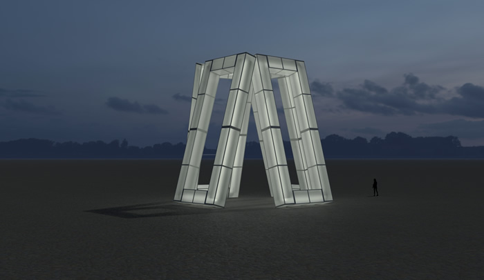筑夢空間是一座12米高的公共燈光裝置,白天呈現為四個霧面白色框架,仿佛隨時可能傾覆的不穩定結構,夜幕降臨則化身朦朧的白色燈柱劃開夜空。它通過光與影的詩意交織,在日月輪轉中投射出不斷變化的影像,呈現出破碎且平衡的力量感。作品不僅邀請人們走進這片不穩定的光影中參與‘修復’,更喚起人與環境、與社區的深層次聯系,修復的不僅是物理裂痕,更是內心的共鳴與敏感。筑夢空間成為光影編織的夢境,連接人心,激發感觀,邀請每一位觀者重新思考人與人、人與環境之間的關系,在互動中發現那份純凈而深沉的能量。