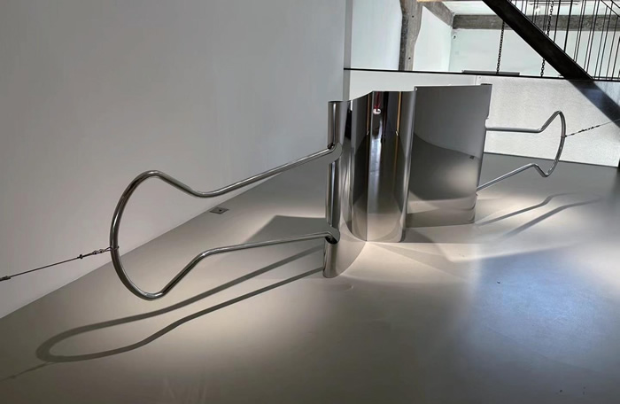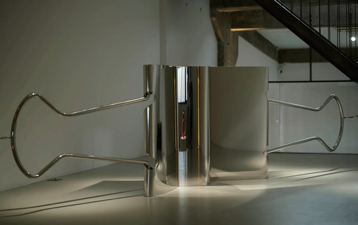 這是一個夾文件的長尾夾的放大版,夾子的雙尾被兩邊的鋼絲繩牽拉著,這樣的平衡是一種僵持的狀態,是雙方勢均力敵的姿態。拔河中,一旦有一方勝了,這種平衡就不復存在了。撕扯開的夾子,像是一個口罩,口罩本是為了保護我們健康的,在特殊時期,它似乎和我們的關系又是復雜的,這件作品足以說明我們和病毒較量的那三年。