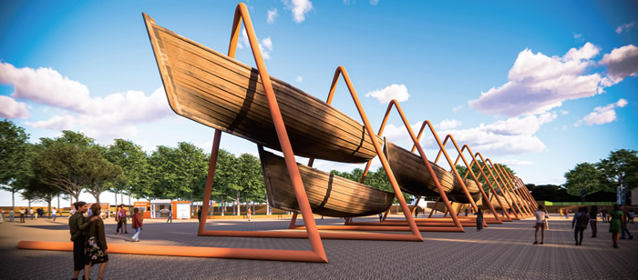 船,自下水的那一刻起,風里來雨里去,劈波斬浪,帶著滿身的傷痛,卻- -生勇往向前。如今,它們上岸了,卻依舊排列整齊,龍形創越,奔向未來。