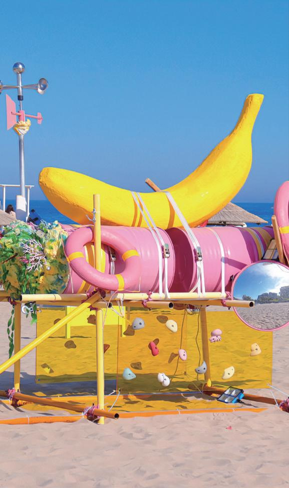 該作品以漂流為媒介,小型生命體為行為的載體。海螺、螃蟹、珊瑚、寄居蟹甚至螞蟻等物種集結開啟“漂流航?!?,彰顯出