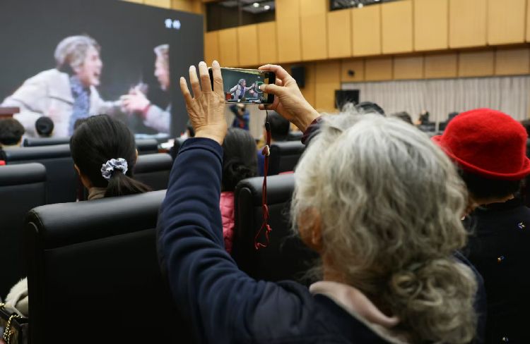 嘉賓觀看表演藝術家朱琳的影像資料。朱琳是江蘇連云港海州人,北京人民藝術劇院演員,被譽為 “中國話劇皇后”。她在《雷雨》《蔡文姬》等五十部經典話劇中塑造了眾多光彩奪目的舞臺形象,以深厚藝術造詣享譽國內外,榮獲多項殊榮,是中國話劇表演藝術標桿人物之一。