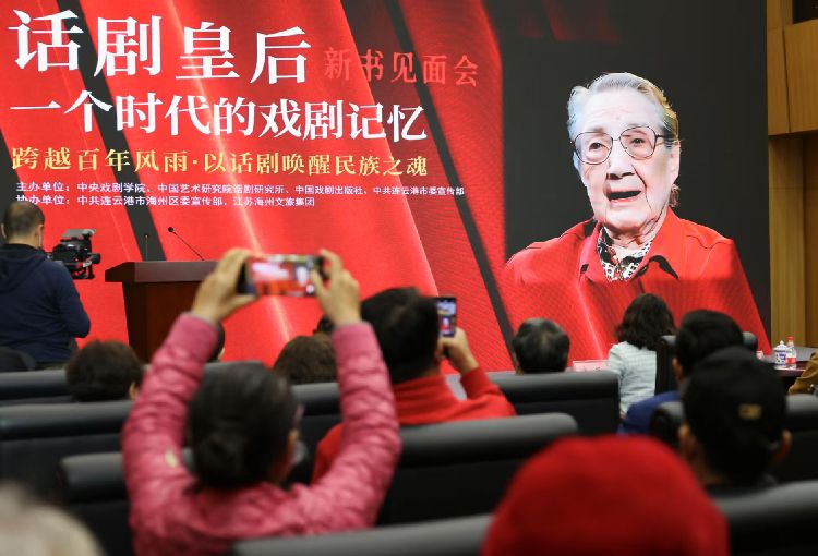 12月18日,《話劇皇后:一個時代的戲劇記憶》新書見面會在中國國家圖書館舉行,此次活動由中央戲劇學院、中國藝術研究院話劇研究所、中國戲劇出版社、中共連云港市委宣傳部主辦。圖為戲劇愛好者翻閱《話劇皇后:一個時代的戲劇記憶》。