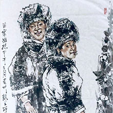 李壯閣 《苗家姐妹》138x70cm 中國畫 紙本水墨 2014年