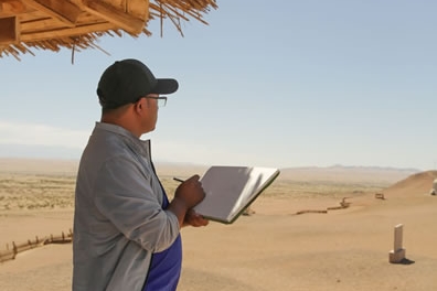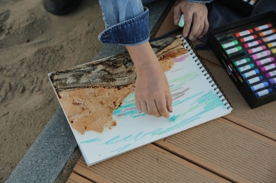 韓國藝術家安鐘赫在黨河岸邊寫生