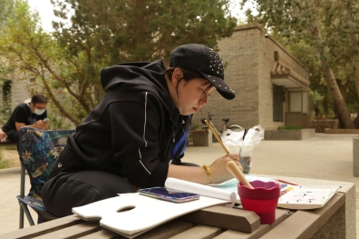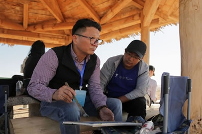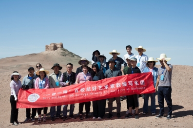 中外藝術家在陽關景區涼亭集體寫生
