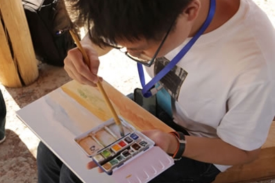 中國藝術家駱驍在寫生