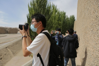 中外藝術家參觀西千佛洞 攝影:岳鋒