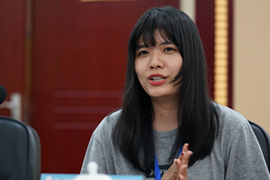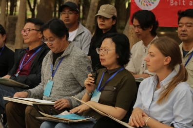 中國藝術家王玉芳在寫生活動交流分享會現場發言