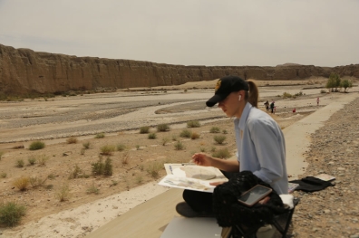 中國藝術家駱驍在黨河岸邊寫生