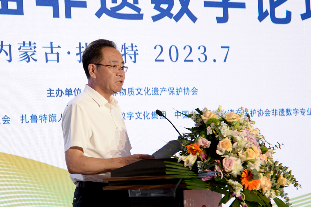 7月29日,由中國非物質文化遺產保護協會主辦,中共扎魯特旗委員會、扎魯特旗人民政府、中國數字文化集團、中國非遺保護協會非遺數字專業委員會聯合承辦的第二屆非遺數字論壇在內蒙古通遼市扎魯特旗舉行。中國非遺保護協會王曉峰會長,著名詩人、中國作家協會詩歌委員會主任、中國作家協會原副主席吉狄馬加,內蒙古自治區文旅廳一級巡視員王雪峰等領導及全國非遺數字化領域學者專家近百名嘉賓出席了論壇。