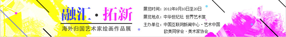 2012年9月12日下午3:00,由中國互聯網新聞中心?藝術中國、歐美同學會?中國留學人員聯誼會美術家協會主辦,華協國際珍品貨運服務有限公司、北京華商仕嘉投資顧問有限公司、中華世紀壇世界藝術館協辦的“融匯?拓新——海外歸國藝術家繪畫作品展”將在中華世紀壇世界藝術館開幕。