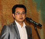 展覽策展人彭烈洪在開幕式上向大家介紹金善的繪畫