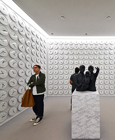 終章是“時間與無限館”,什么是形而上的藝術?時間,如流水,無情地不斷向前、變化直至消亡,在威尼斯瀉湖旁,展覽真正進入尾聲。面對著威尼斯瀉湖,藝術家消失或因為催眠變得“更好”。