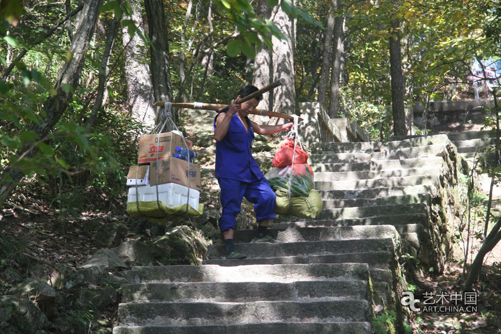黃山道路上的挑山夫