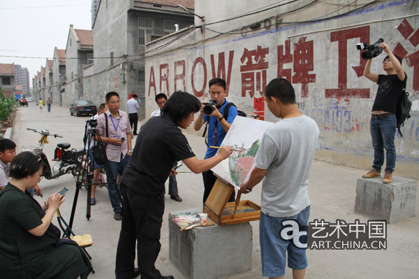 在張江舟副院長以紅旗渠勞動模范為對象進行人物寫生的同時,中州大學教授于會見也先后在李莊村的路口、紅旗渠干部學院主樓的窗邊支起了油畫架,將林州農村以及城市建設畫進了自己的畫面。