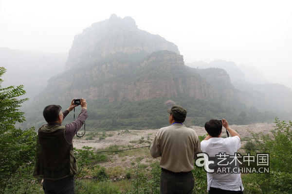 6月11日,藝術家的大隊人馬一早就來到了太行大峽谷。我們的車隊沿著蜿蜒的山路顛簸而上,載著藝術家們到太行天路和太行屋脊踩點取景,上午雖然煙霧繚繞,但大峽谷依然不失雄渾壯闊,彌漫的煙霧反而帶來很多神秘和縹緲的色彩。藝術家們的激情一下被調動起來,紛紛拿起相機或取出速寫本記錄這驚心動魄的大自然杰作。