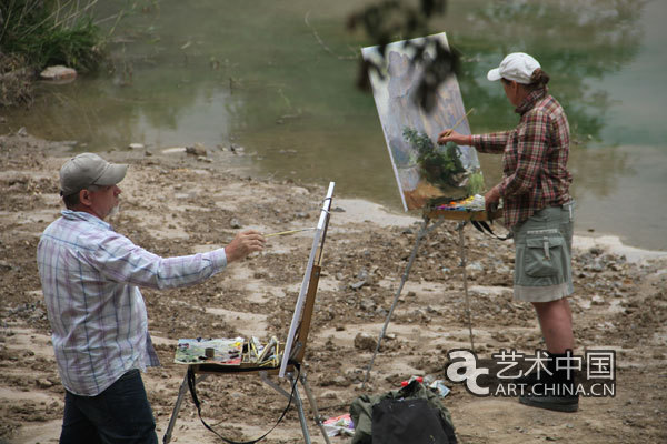正在寫生的俄羅斯畫家謝夫楚科和斯維特萊娜夫婦