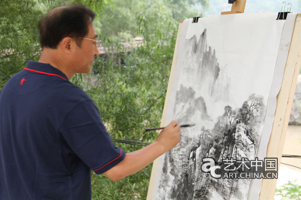 中國藝術家唐承華、吳運鴻開始漸入佳境,經過了前幾日的初步鍛煉,今天的創作與前幾日已經出現了新的面貌和新的境界。吳運鴻說自己去過非常多中國的山水寫生,這次太行之行是收獲最大的。