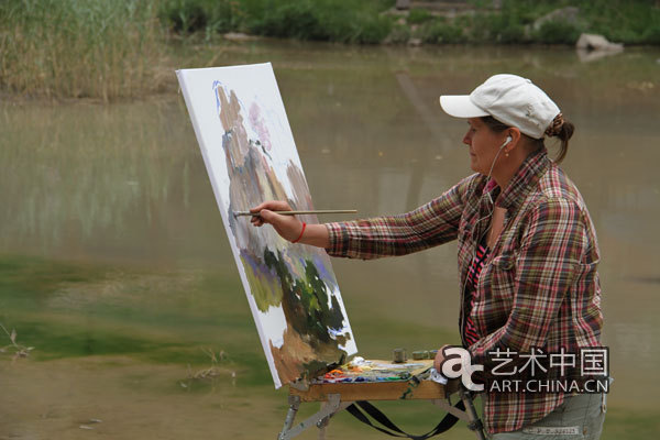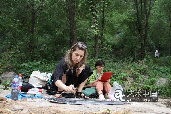 希臘藝術家瑪莉安娜昨天才趕到活動現場,今天是第一次同大家戶外寫生。她覺得這里特別好。她非常喜歡中國北派山水的作品,她覺得能在古代中國山水大家曾經生活和創作的地方感覺非常榮幸。